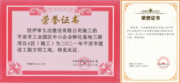2022-03-02近日,平涼市建筑業(yè)聯(lián)合會三屆四次會議圓滿召開,會議宣布了2021年度平涼市建設工程“三優(yōu)一文明”獲獎項目并頒發(fā)了省市級建設工程獲獎榮譽證書,市產投集團承建的平涼工業(yè)園區(qū)中小企業(yè)孵化基地(三期)項目A區(qū)獲評“平涼市建設工程文明工地”和“甘肅省建設工程文