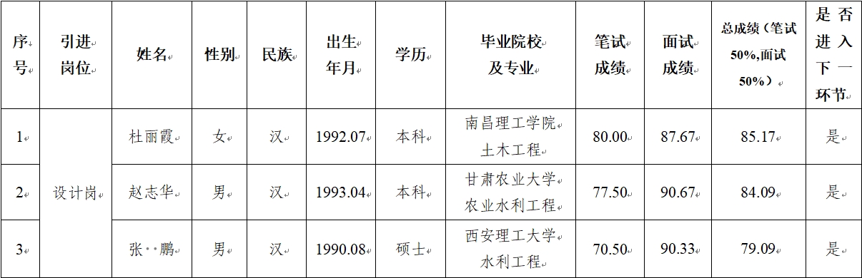 2024-09-25根據(jù)《平?jīng)鍪袥軚|水利水電勘測設(shè)計有限責(zé)任公司2024年特殊人才招聘公告》,市產(chǎn)投集團在組織報名、資格審查的基礎(chǔ)上,按程序完成了筆試、面試工作,現(xiàn)將筆試、面試成績公示如下:? ? ? ? ? ?